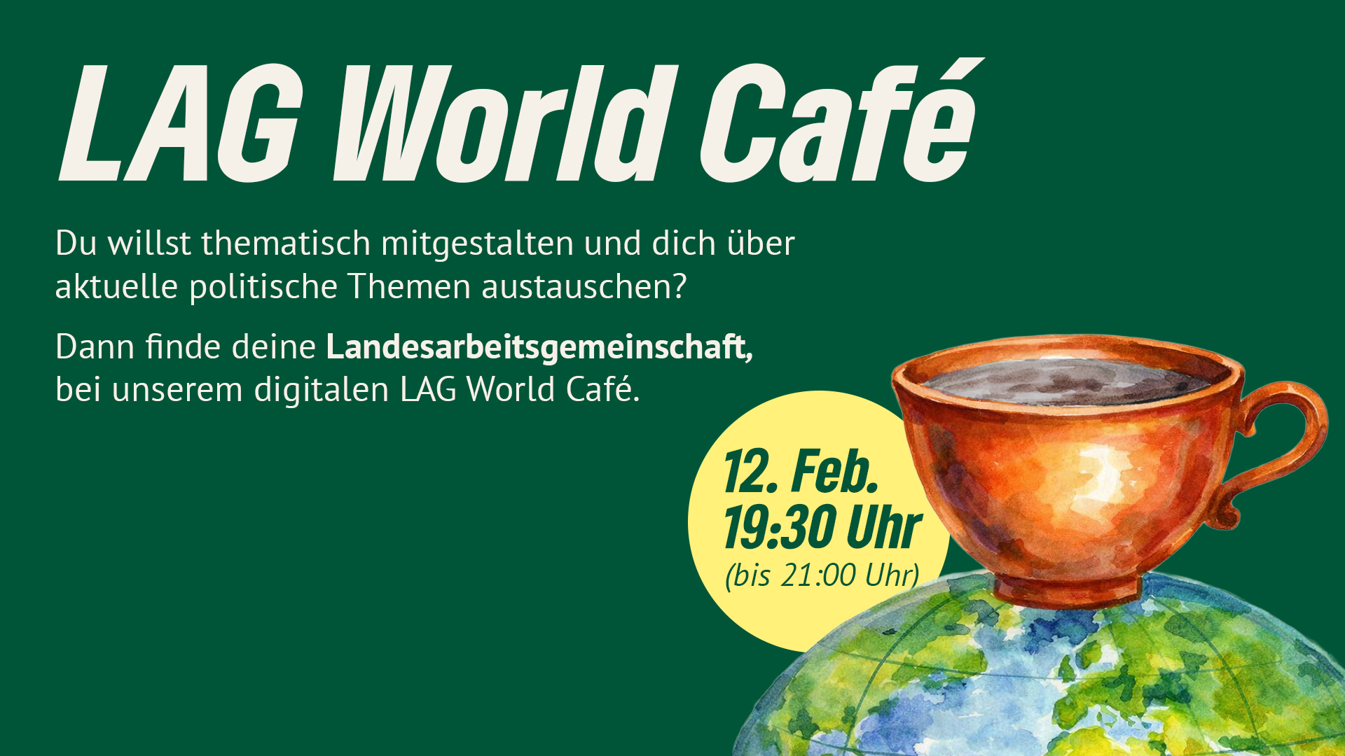 Dann ist unser digitales LAG World Café genau das Richtige für dich!